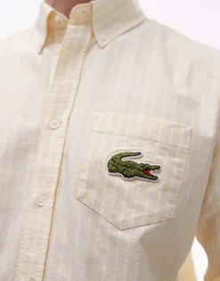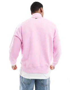 Lacoste Long Sleeve Crewneck Jumper In White With Piping Detail For Men